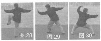 左掌推出,目视掌方(图31~图34)