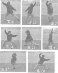 注:右大缠与左大缠动作要领相同,唯左右方向相反(图35~图38)