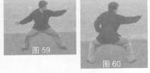 27.转身推掌 身体左转,左掌向外缠腕刁抓随回收腰间,同时右脚进步呈马步,右掌立推体右侧,目视右掌方(图59,图60)