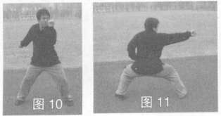 要点:蹲身握拳协调,上体微含,左、右拳应有争力。