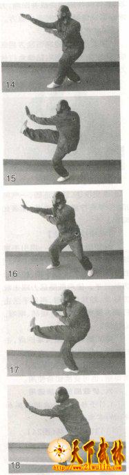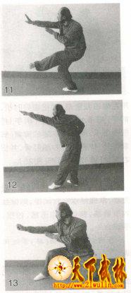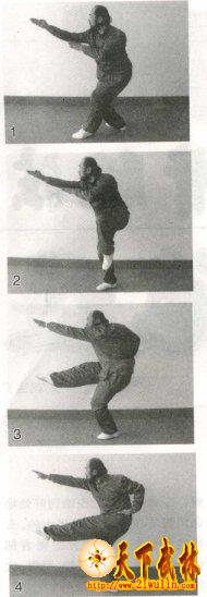 此组腿法可通过引手掌单用,也可变换组合使用。