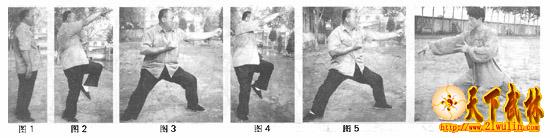 (3)初练时宜慢,先弄清动作要领,待招正式圆后才能加快速度,贯劲发力,逐渐形成刚猛气势。