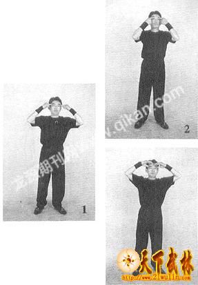 向上劲要小,向下劲要大而长,以消两耳之火;两眼更宜张开。如此往复若干次,以耳中嗡嗡冒火而脑府清朗为度。