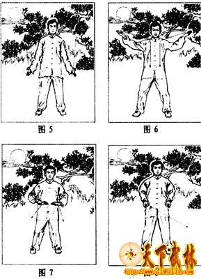 说明:照上所述,反复练习18遍后,换手练习,方法相同左右相反。