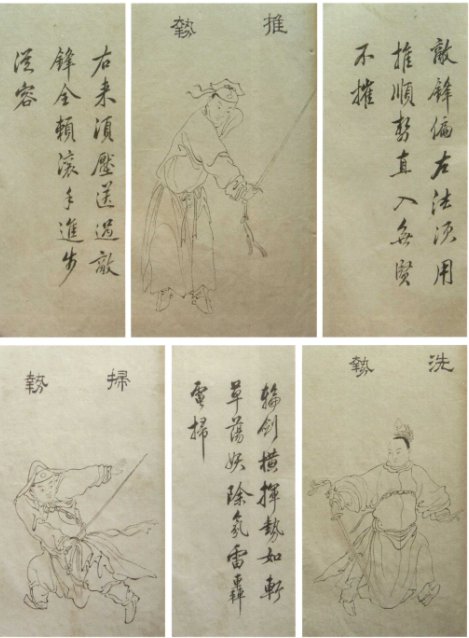 汉唐以来,彬彬之士执笔墨而拘于文,赳赳之夫仗戈矛而流于莽,遂使古法渐湮,而干莫之精沉大泽而淹龙光者,良可惜也。顺治间,有一老人不知所自来,入湖湘之白鹤山中。巉岩峭崿林木蒙茸,野兽山魈云屯雾散,数千里不接村墟,樵苏迹绝。老人则茅屋数椽于陡壁间,形容奇古,衣冠不与世同。且无炊烟灶茶,只身草莱而居,人无过而问焉者。时湘中一少年好山水游,偶憩于此,见其器宇超逸,精神充越,心异之,后复日日往,不虞道里之艰也。然每至初不交一言而退,如是月余。一日老者忽日:虎狼堆里人迹稀逢,子何数数耶?答曰:知公奇人,时来相进耳。老者顾笑曰:少年何好?曰:好武事。曰:何所习?曰:诸艺皆粗习之。老人曰:长戈大戟武夫雄耳。须儒艺。儒艺何?剑法是也。此法创自轩辕,内外兼之。内运为术绝影减形,外昭于象,机动神行百技之原皆此焉出。姑先示子外剑何如?老人于是起舞。少年见其捷如流电,宛若飞花,翱翔之间迥非恒势,遂拜,受之。不旬日尽得其妙,及再至而老人已不知所往矣。少年既得其传,欲遂游天下名山川,托缁衣以自便号广义云。后广义传三韩周礼。周平生惟习一剑,尝教内延武士,诸艺皆授之,惟未谈剑,不知皆剑法所出也。周复传三韩祝公。余卜居南城下,与祝公比邻得观其秘,大约取势面面俱圆,不事嚣张,有儒者风,而出没迅速,宛若游龙,其神变不与他技等。且剑之为器也,健而锐,美而文,置小窗琴几间,与一卷书、一张琴、一炉香参错而陈之,以供豪人清赏,其怡我情矣。至若空阶雪压,案接冰天,曙光晨鸡,闻声起舞,此时之气何其壮哉。其法定十字,势列三排,首排直,二拍横,三排势兼左右,以剑有左右锋也,精而炼之无不得者。余喜其法之长出其奇,有以接不传之秘用,是述其始末且绘图于简端,使有心者观之了如指掌云。