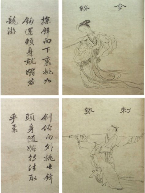 拿势:剑低向外,挑吃锋头。身随婉转,法取乎柔。
