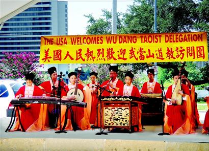 图为:鸟瞰武当 图为:武当功夫 图为:仙山琼阁 图为:道教音乐出访美国 图为:南岩胜景