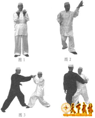 如有人用右拳击我前胸,我用左手外缠化敌击,随即进步用右掌击敌胸。(如图3、4)