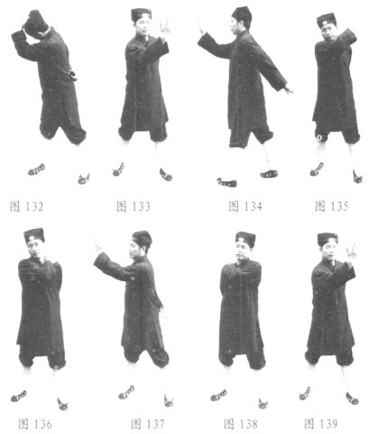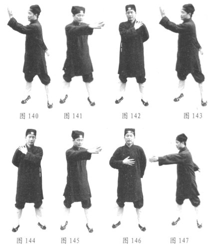 ②拍打左右中府穴(图139-144)。每次练习均以左右手拍打穴位三次,多则不限,因人而异。