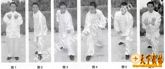 可四门八方、三角、S形全在自己而定,不可拘于定法,收式用鹰捉图、虎扑图、雷声(如图5、图6)。