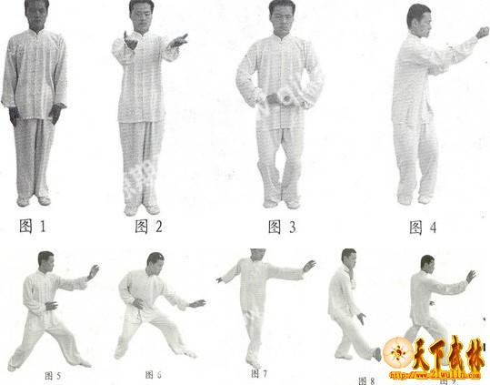 形意门中八字功拳法是由“斩截裹挎挑领云顶”八个单项套路组成。而由此衍生变化的有传统八字连环拳和金刚八字锤外,尚有八字战锤等技法。但是这些均属于奇门八字功,也就是软八字功。还有一套正门八字功,也叫硬八字功,这可能只有李存义派形意门才有,其它门派尚未见介绍过。形意门中素有“五行为体,八字为用,金刚八式易筋洗髓”之说。过去囿于门户之见,加之师门清规戒律甚严,门内人辈德高艺精尚不传授,外人更是鲜能窥其门径了。笔者受教于著名武术家恩师陈盛甫教授,复受益于武当名家原金锁老先生,多年来勤加习练,不敢稍有懈怠,虽无大成,但亦获益匪浅。今值国术昌盛之际,余不揣浅陋,将其整理成文。预备式:三体式(起势)