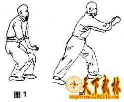三、就:缩着身体的意思,就是把上下身缩而为一。有歌诀为:就如蛋,去如箭,打倒人,还不见。这个姿势颈项缩着,而头微仰起,目光平视,两肩下沉,两肘护胁并靠住两胁。两肩收缩后贴住锁骨,背要成圆形,肛门要提起,三弯要弯,看起来端正却又歪斜,看起来斜却又端正,就是指的这个架式而言。