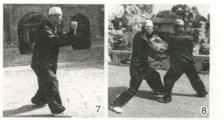 敌如退步,我上左步,用左钻拳击敌前胸或下颏,敌必无还手之力(图8)。
