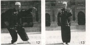收势用“汤瓶势”、“接嘟哇”,以后不再重复(图12、13)。