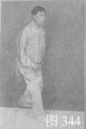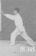 要求:摆腰、蹬地、插掌,要同时完成(图344)。
