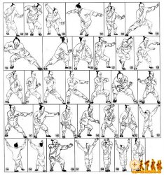 四把英雄非等闲,五行六合变势难, 学者要得真消息,全在动静两字间。 一、动作名称 1、预备势2、起势3、六合势4、按头势5、一寸二践右横拳6、右鹞入林膀回身7、右挑顶8、退步左鹰抓9、右斩手炮10、并步右单点11、右通天炮(车行如风)12、进步左刀轮手13、圆步右横拳14