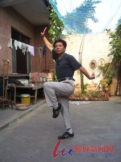 韩庆泉说,他老家在阳谷县郭店屯乡东韩村,小时候家乡习武之风很浓,他父亲韩继武是一个很有名气的乡村拳师。他记得很清楚,刚过完五岁的生日,父亲就让他和四个哥哥一起习武,练习扎马步和倒立等一些基本功。扎马步一扎就是一个小时以上,倒立时流下的汗水要把泥土砸出坑才算完成任务。