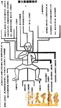 取象 此势有比之意。左手随右手运行,胸亦随右手转圈,比之自内柔顺中正。左足随右足运行,合观之,有外比之象,有显比之吉。此势以左随右,上下皆然。但引而不击,得下卦坤之柔,上卦坎之刚中意,故取诸比。上下相随,刚来而下,柔动而说随,故又取诸随君子,以向晦入宴息,但引而不击,可也。 七言俚语 闲来无事看白鹅,右翅舒展又一波。两手引来搂峰势,奚殊秋水出太阿。 其二 元气何从识太和,右辗(辗者转之半)两手弄秋螺,北方引进神机足,亮翅由来有白鹅(人之涵养元气如鹅,伏而不动,以养精神)。 前题五言绝,不是蛾眉月,摩来肖逼真(两肘弯屈,胸如鞠躬),弓弯何不发,一发倍精神。