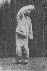 说明:倒撵猴的姿势与搂膝拗步一样,在过程中有些不同而定势则一。