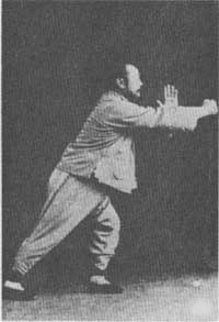 说明:此势在用法中起着连环性的作用,在八法的运用方面亦较复杂,包括扌朋、扌履、挤、按、采、扌列、肘等劲,一虚一实的使用,因此不能把它作为分解的说明。