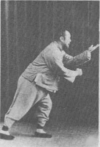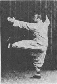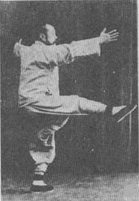 说明:关于太极拳的腿法简单介绍如下:分脚是将腿提起后向左右分开踢出,用脚尖踢;蹬脚是用脚跟来蹬。如在盘架时须注意之,不能踢蹬不分清楚。