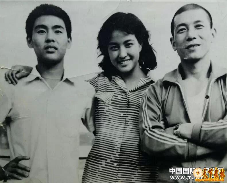 1980年拍摄电影《神秘的大佛》时,刘晓庆(中)与赵长军(左一)
