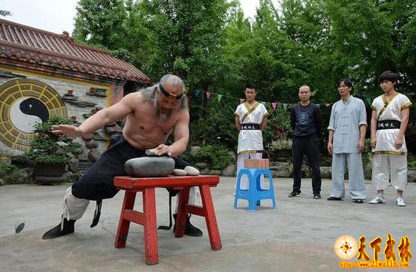 何道君头顶能碎大石。当他听说有人以打假的名义质疑传统武术的技击性,他豪言:“让他来挑战我。”