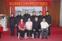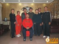 李修灿和恩师合影 徐州弟子与恩师合影 金秋十月,秋高气爽。中国太极拳名家大师,槐园拳社社长:陈骁伍先生在徐又喜收新徒。 华灯初上,在天海大酒店收徒仪式正式开始;主持本次仪式的是丰县著名企业家武术爱好者蒋尊普先生,也是刘修灿先生的引荐人,参加本次仪式的有