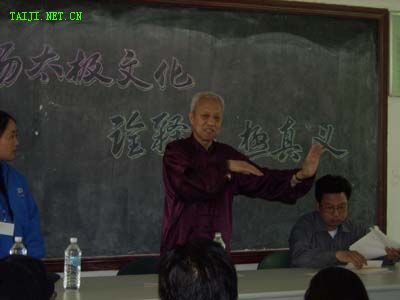 问:太极拳讲究“培根”,根的含义是什么? 答:“根”指的是下盘,“培根”就是增强下盘功夫锻炼,方法主要盘架子、站桩;培其根,而润其叶,根荣则枝叶自然茂盛。 问:为什么有人叫“单鞭”,而陈老师您叫“丹变”? 答:“丹变”是指丹田的变化,是以气吹形的表现;“单鞭”是陈氏太极拳传入北京后,人见此势双臂展开象“鞭”,固将此势叫作“单鞭”。