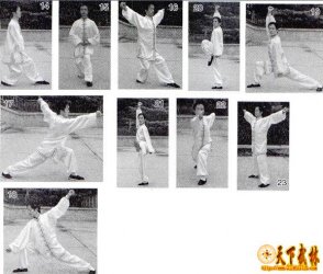 冲天炮削开上场,跪步打捶敌难挡。 震步冲拳打中门,左右分手撩阴忙。 前急步鹞子追风,弧形老鹰大展翅。 虎抱头奔打肋旁,踢左脚转打胫骨。 翻右拳迎后敌手,踢右脚猛劈左拳。 翻左拳迎后敌手,踢左脚猛劈右拳。 回头望月击太阳,冲天炮还原归一。 1.两脚并拢,并步站