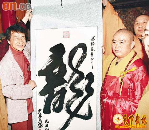 以“复兴少林文化”为旗号,以打造“功夫之都和文化圣山”为目的,最终落在把客人留住的具体而微的实惠上,这符合商业逻辑。不过,想像一个那么闹腾的少林,就别和佛扯上什么关系了吧?搞武术就是搞武术,说武化比说文化更直接,其实说到底还是实惠化。(图为成龙获少林寺方丈释永信赠送亲笔题字的“龙”字画 新浪娱乐