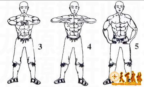 目前武林中贯名“少林”的易筋经功法最多,如“少林达摩易筋经”、“少林韦驮易筋经”、“少林罗汉易筋经”、“少林金刚易筋经”等等,练法各异,五花八门。追溯源流,大都认为是少林嫡传,但真实师承,无从查考。本功依照清代刻本中的易筋经画像和歌诀,重新编释出来,供有兴趣者练习和探讨。 【总歌】 达摩面壁修禅定,僧众神靡根缘浅。 创得易筋导肢体,健身祛病兼延年。 秘传功夫世稀有,少林宗法藏真言。 高境非是一日事,勤学苦练不怕难。