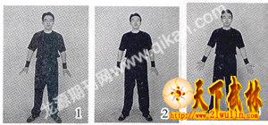 | 【编者】《少林与太极》改版伊始,特推出《金警钟秘传浑元一气功》系列功法。少林功法素有“内炼一口气,外练筋骨皮”之说,其内壮外强、抗打排坚的护体硬气功为众多少林拳爱好者所追求。本文作者为金警钟大师第三代高徒,19岁起即习“浑元一气功”,功力深厚,见解独到。应本刊邀请,在《金警钟秘传浑元一气功》刊登过程中,作者将同步为读者释疑解惑,与同好共研。来信请发送:gf8341@163.com或寄本刊编辑部收。 “浑元一气功”,又名“一气浑元功”,此功还有一个鲜为人知的名字——“罗汉护体浑元一气功”。浑元一气功乃嵩山少林寺秘传硬气功,由妙兴大师首次外传。 妙兴功力深厚,人送绰号“金罗汉”,勇冠少林。妙兴学自恒林,恒林和尚也是少林功夫一代高人,大成拳宗师王芗斋老先生当年曾专程与之切磋共研,足见其功夫非凡。 妙师得意高徒金警钟先生,自1926年始三次前往嵩山求学,得妙师亲授,功力超群,人送绰号“金钟罩”,名驰武林,《国术名人录》上誉其“拳脚器械,无一不精。尤足贵者,则为‘浑元一气功’,先生之于此也,能铁尺排肋、贯顶开石,盖已登峰造极,而入化境矣”。 金大师是当时张学良东北边防军武术总教官,因而使浑元一气功得以在军队中大力推广,影响深远。金警钟徒弟中优秀者有张志华、张国栋、黄无恙、刘文敏、赵天午、甄诚、龙飞等,皆是武林俊秀,威震一时。 何谓浑元一气功?“功出嵩山,护体真传;直养横练,抗打排坚;一气贯通,内外浑元”,故名。浑元一气功属武功动功范畴,静练极少,重在动练,共分五大功法。①吞吐功:呼吸吐纳,丹田贯注,积气聚劲。②散气功:运意导引,周身贯通,布力齐劲。③排打功:自打自挨,坚实全身,不畏拳脚。④操硬功:贯劲抗硬,不畏重击,身如铁石。⑤调和功:理气顺息,祛火散淤,清滞除疾。 笔者应《少林与太极》之约,参照金师珍本,结合练教体验,把此功系统整理出来,供有兴趣者操作习练。但硬气功夫内秘细腻,内景微妙,文字难能尽言,练者若有不明之处可联系本人,笔者必尽所能帮助同好。为了明白易学,笔者把每式多动练法分解开来加以细述,并配以图片,其实每式动静都是连贯完整的,学者练习时一定要仔细阅读对照。 吞吐功是浑元一气功的初步功夫,不可或缺。此功不成,余功必打折扣。吞吐即“呼吸”、“吐纳”之意。吞吐功通过“口吞鼻吐”,配合“闭口沉气”,注重练习丹田腹式呼吸,再以外动加力引导,能够增强呼吸力,增大肺活量,激活内元气,增加体能量,锻炼腰腹劲,提高四梢功,为气劲贯通打下根基。 一、养气数息式 养气式既是吞吐功的准备功,也是整套功的准备功,不可等闲视之。 1.身躯正立;两膝自然伸直不必用力,两脚左右离开宽约同肩,脚尖自然外斜;两臂自然伸开,五指自然分开(自然若常,伸而不挺,伸却有弯,名为自然掌。学者要注意这个掌形,以后会经常用到,可顺延参照),两腕略挺,虎口向前,掌心距股约有一拳宽;胸开张,肩后收,颈宜直,颚略收;两眼垂帘,目光下潜;舌轻上卷,微触上腭,闭口合齿,呼吸用鼻(图1)。 姿势做好后,外形不动,即可开始练习“数息”。渐渐排除其他念头,渐渐把心意收归丹田(位在下腹),脑中默记呼吸息数。从“1”开始,可少记,如到10、到50,反复默数;也可多记,如到600,一次完成。数息时不要忘记,不要死记,朦胧脑府即可,不要因此扰乱心神、破坏气机。 数息不是单纯地数呼吸次数,而是用此法养心养气,所以数息时要求“数动丹田”, 即数一下,丹田感一下、应一下、动一下,吸气时自然舒腹,呼气时自然涵腹。这样练习下去,意念和呼吸相合了,呼吸和丹田相合了,就会形成浑元一气功所要求的“气随意注”、“丹田呼吸(腹式呼吸)”、“气贯丹田”,长期练习,则内气充盈,体能大增,意气合体,内外浑元,自有妙用。 养气顾名思义,重在滋养温养,因而不能使用“武火”,要用“文火”,即意念和呼吸都要柔和淡然。刻意和猛烈,必伤内气,必出偏差。 数息有利于入静,入静有利于数息,两者相互作用,练久了意念自趋安定,自然专注,数息更易进行,功效更加显著。所以初学者即使杂念丛生(这是练静功时常见的现象),也不要太在意,更不能因此急躁,否则遇乱再乱不可收拾,只需渐数渐进,以“数”代之,以“渐”制之,日久自平。习练者若感意念太乱,实在无法坚持,则可干脆停练,或改练下式动功。 数息初练时要采用自然呼吸法,即呼吸的频率同平常一样。有基础后,呼吸速度会渐渐慢下来,呼吸长度会渐渐增上去。练久了,呼吸气息自然变得缓慢、悠长、均匀,这是渐渐适应的结果,不是刻意调节的结果。如此练法可避免偏差,可养脏腑、祛诸病,尤对初学者、体弱者、有病者更为重要。 初学者一般总练一二百数即可,有基础后可以加至五六百数,以六百为度。而功夫深者每次练功又变多为少,以一站心平、气息顺遂、丹田充盈、底气笃实、身上生劲即可,不必多练。如专为健身者对此大下功夫,另当别论。 2.练到息数,即正睁两眼,炯目前视,用嘴长呼。用嘴长呼时,牙关轻合,舌尖放平,嘴唇微微张开一条缝,气从牙尖缝间悠匀呼出。意念上有将体内浊气全部呼净之感更佳,身心感觉轻快舒适。意念注重呼气,吸气时用鼻长吸配合。呼吸三四次后接练下式(图2)。 “数息”、“养气”好懂、好学、好练,通过呼吸数数可“以一念代百念”,达到心意入静、丹田呼吸、蓄