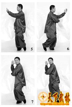 拳论:其根在脚,发于腿,主宰于腰,形于手指,由脚而腿而腰,总须完整一气。如此左右旋转可反复练习,一般以八次为佳。