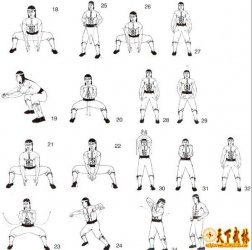 少林钢拳铁掌功,法简效宏,可使习者内修外练,功成后双手如钢似铁,击墙成坑,用于搏击拳到对方应声而倒,用于技击威力甚大。本功法是历代少林武僧必修之功,提高功力快,练习三五十天,被其击中者必受重创,望习者以德为重。 1 蹲星伏虎桩: (1)面南背北,双脚分开略