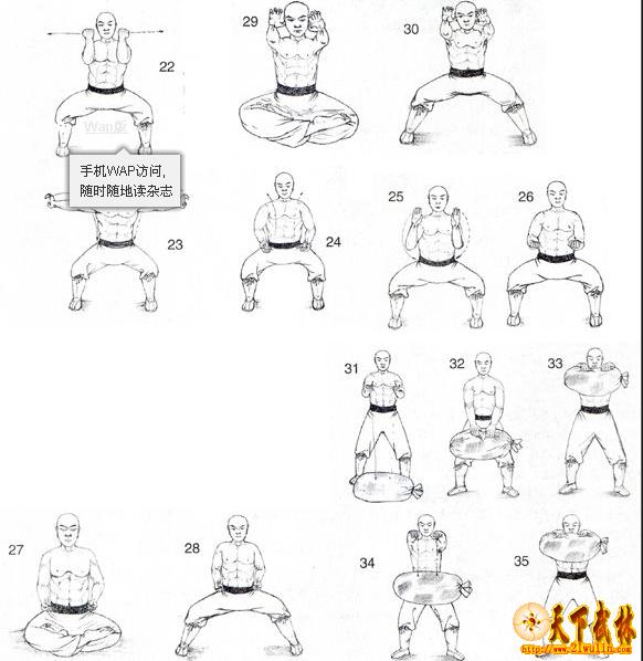 最后将气徐徐呼出,放松身体,此段内壮大力法即告练完。
