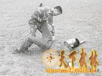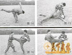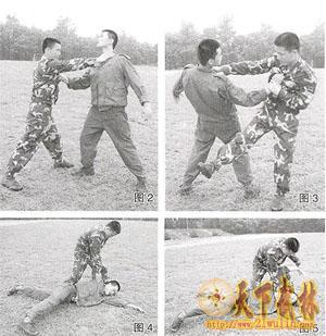 第四种情况:对使用腿击歹徒的反击一绊腿击腹