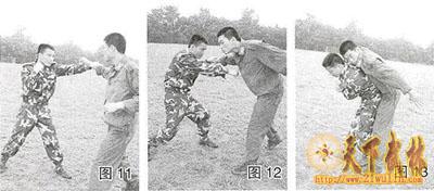 重点提示:看准敌近身时机,勇敢沉着,主动迎击,推击敌下颏有力,下潜快,提掀猛,控制敌颈部及时。