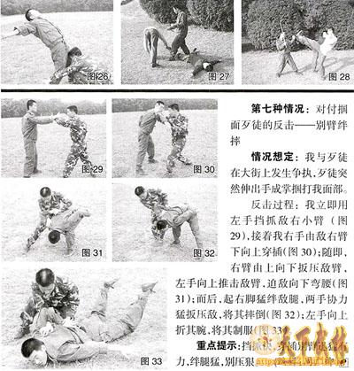 第七种情况:对付掴面歹徒的反击——别臂绊摔