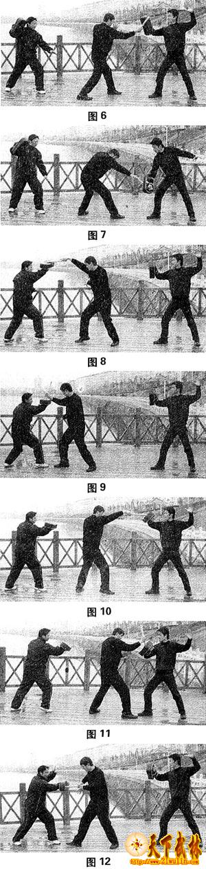 以上一对二打靶训练对群斗的距离感、斗志勇气与增强自信心都有极好的帮助。并能初步体会到群斗的感觉与气氛。经过上述训练后,下一步就可以进行真刀真棍的群斗训练。