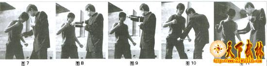 7、不冲身:“冲身”即是“失形”。不“冲身”是指在做攻防动作时要保持重心的平衡,尽量减小被对方借力而导致“失形”。