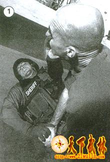 图示:杰夫·克兰西说:大多数地面格斗训练是不现实的,因为它们不包括防御对眼睛的攻击,但对眼睛的攻击在街头格斗中经常被使用(图1)。
