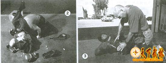 当警官们学习如何在地面上进行格斗时,他们必须保持对兵器的关注,还要使用方法防御对手空手的攻击(图3)。