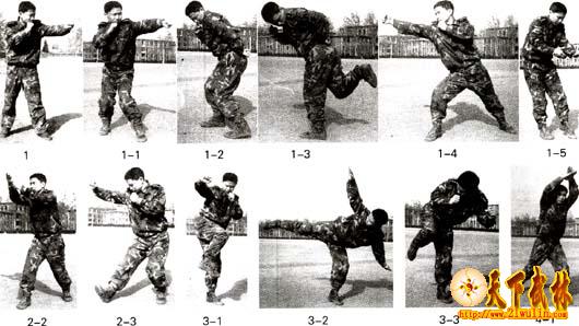 动作要求:交叉要用力,起身要快,击裆要狠。