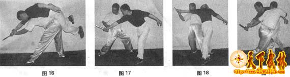 技击要点:擒腕要及时,拧捌手臂夺刀要用身体旋转和两手的擒抓之力。如歹徒不肯轻意放手,肌健必然僵硬,趁势将敌肌健用鹰爪力抓伤。速度要快,稳、准、狠,方可制敌。