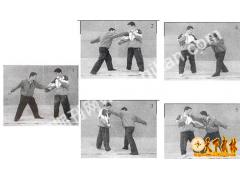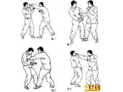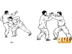 头顶技击术,是用头前额、头顶、头后脑部以磕、顶、碰、撞等法而制对方的技术方法。其法攻势迅疾、猛狠,使对方难以防守。 1.炮打城墙 对方左脚前上一步,同时用右冲拳向我胸部击打;我左脚前上一步,同时用左臂向左上挑架开其拳(图1)。动作不停,我右脚前上一步,同