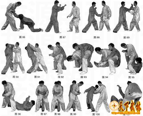 制人而不制于人、妙手空空是中国武技崇尚的交手之道。以硬碰硬如同牛斗、壮欺弱、伤人战胜对手是粗夫莽汉下乘之技,非关武学。随机应变、浑然无迹、有感皆应、阴阳互济是技击规律的法则与精神,是武学臻美境界与精髓,脱化神明武技之道激励着习武者在实践中进入技艺的自由王国。通过方向正确、方法科学、循序渐进,经过苦练、实练和巧练,由精益求精达到出神入化,由渐修顿悟而趋于大成。武术交手里的拿技,运用出现的结果可能是拿不住、拿住、拿伤、拿死。在交手练习和比赛中必然是限制伤人、死人的后果,拿技的使用不超过伤人的度,交手有度才能可持续练习,从而水平提高、发展全面。交手训练与竞赛中使用拿法的人身安全问题是习武者普遍关心、必须解决的问题。经过实践的检验,遵循提高武德、发展技术、把握界限的原则就能解决。交手训练与竞赛中使用拿法制人而不制于人,做到运用有度、生擒活捉,达到完胜甚至毫发无损是可以实现的境界。 正确地运用擒拿技法,作用于对方身体某个部位环节,使其骨骼关节、肌肉韧带或筋脉经络穴位暂时失去正常能力,通过控制对方肢体的一部分而制其全身,达到擒捕、控制、制服的目标。擒拿可以做到相对省力地完成锁定效应,即被拿者整个运动系统被锁定,达到制其全身的奇效。如果你较好地掌握了擒拿技术,就可以实现手到擒来、完胜制敌的境界。把握好时机,成功擒拿对方或反擒拿是切实可行的,身材瘦小或女性也有出其不意、一招制胜的可能。武术散推手中的擒拿尚用巧劲、忌用拙力,讲究因形就势、以巧取胜,关键是懂得用劲、掌握技巧。交手讲究斗智、斗技、斗勇,技艺精熟者,常可一抓而就。擒拿还可与踢、打、摔(跌)法兼施,讲究变化、融于一体。在交手中手拿脚绊,倒不了就打(踢),能摔就摔、摔倒了就擒,直到制服、擒捕对方为止。擒拿并不难学,擒拿技术经过正确地学练,力度可以由自已控制掌握、强度可视交手性质而定,合理合法地使用擒拿技术可以伤人战胜对方,也可以避免人身伤害、控制对手失去继续战斗能力而制服,不伤人而完胜对手。 有一次几位拳友在一起切磋拳艺,拳友甲提出:金丝缠腕谁都知道,就是谁也使不上,"好拿不如拙打"。拳友乙笑道:不一定,可以试一试。拳友甲出右手正巴掌向拳友乙脸部扇来,拳友乙左步闪进右手从下边捋腕,左手搭在甲手背上,顺势转腰向怀中切腕一带,拳友甲便全身发软、蹲跪在脚前,不动还好,越挣扎越疼痛难忍。下一回合反过来,拳友乙出右手正巴掌向拳友甲脸部扇来,拳友甲也左步闪进右手从下边捋腕,左手搭在乙手背上,顺势转腰向怀中切腕一带,只觉得拳友乙软软的手腕好象没有骨头,十分顺从地跟着自己向怀中切腕带时一随,拳友甲立刻失去平衡、一个屁股蹲儿便坐在了地上,不由自主地撒开了手。经过一段时间的练习,拳友甲意识到拿法不是使不上、不好使,是自己不会使、工夫没下到。拿法以通过控制某一局部而控制对方全身,达到对方丧失战斗能力而完全取胜;对于反关节控制采用不硬顶、不较劲、顺化解脱的技术,完全可以做到不受伤害,甚至转败为胜。硬顶死抗极易受伤,但这属于自伤,因为在各种性质交手中你不能不让对手施技,应该是练成对方使用何种技法自己都能对付。 科学正确有序的训练是获得擒拿技术的有效手段,完善的技击训练方法使技击体系更趋合理、目的明确、效率较高。把练习内容里的东西转变成具体可操作的东西,把需要"悟化"的内涵用具体训练手段转化成大脑表象,可以使练习者易于掌握擒拿要领,加快提高水平的时间。通过有形招数、固定把位的练习,使习练者明了人体关节运动特点、运用手法、技法对关节控制的效果,手头有准后转入到随机环境中,灵活应变地运用各种擒拿技术,为下一阶段交手训练中"一抓而就"奠定坚实的基础。擒拿技能反反复复地多次训练并能达到自动化,以致不论遇到何种搏斗情况,都能成为自己的一种"下意识"行为,"条件反射"地施展出来。 擒拿制敌需要手拿脚绊、上下相随,手法之巧妙,有赖于步法与身法的密切配合。要重视对于步法、身法的研究与运用。身法与步法,是运劲、发劲的总机关,进攻或解脱变化一般都是从腰的转动和脚步的变换开始,在技击实战中,身法与步法占有特殊重要的地位。对步法的运用与变化的要求,主要是分虚实、忌双重、多绕行、善切插。实践经验表明,步不快,则手慢;步不顺,则手散;步不稳,则手乱;步不灵,手难变。手法易会,身法难求,步法不活,周身不顺,技无所施,必陷于被动。武术注重周身之功,武术散推手中的擒拿讲究手眼身法步的协调一致,也非常注重肩、肘、腕、胯、膝在交手中的巧妙运用。擒拿术重在巧制关节,对方的肩、肘、腕、胯、膝是拿制的重点目标,由于具有屈伸旋转功能,所以又是擒制对手的基本手段,若能将自己的肩、肘、腕、胯、膝运用灵巧,擒拿或反擒拿之时如虎添翼。在拿法中发挥各关节可屈伸旋转的功能,配合手上的手法和脚上的步法,运用裹缠、旋绕、切压、沉挫、扳撇及跪腿、蹩胯、绷别、挑跟等技法,就使擒拿术不单形之于手,而且遍身是法、浑身有解数。武术散推手中的擒拿注重轻灵绵随,运用技法要抓战机,忌露形、避免打草惊蛇;抓拿得势即可进招,攻其不备制在对方措手不及则被擒住。要善
