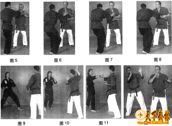 这几个动作攻击了敌人的四个穴位,从而可以控制敌人的身体。这一招很可能把敌人打倒。即使不能这样,也会使他处于非常不利的境地,使你能够继续反击,他根本来不及反应。最后,用一个和一般做法相同的动作,劈向敌人的手腕。