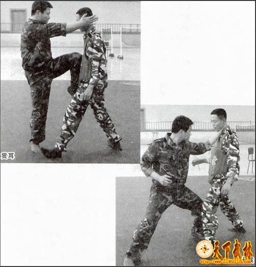 攻击方法:拳打,掌拍,膝顶,肘击,脚踢或头撞等。
