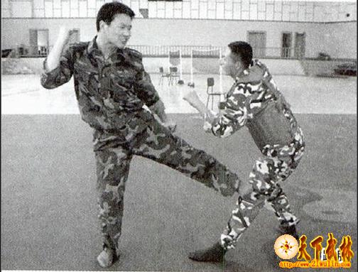 攻击方法:从正面侧面蹬、踹、踩、踢,或手别膝关节。